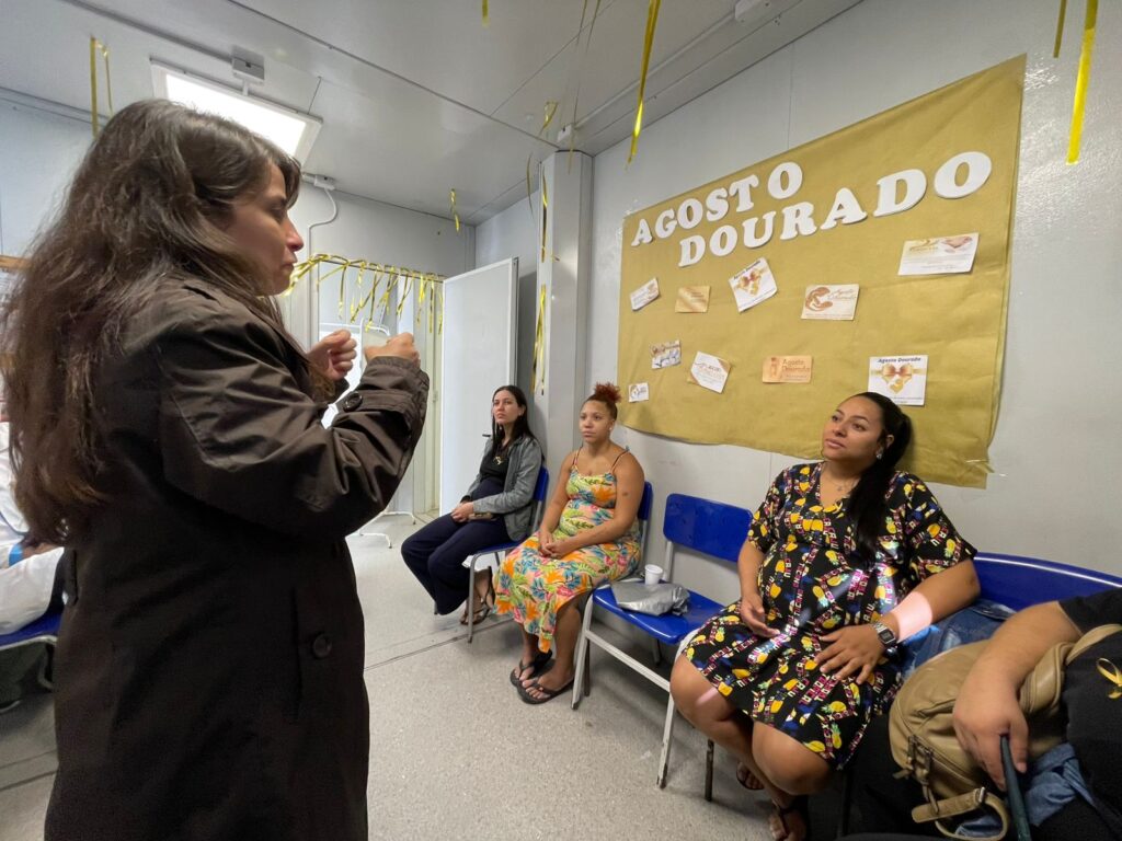 Durante a atividade, foram abordados os benefícios da amamentação para mãe e bebê, além de orientações práticas sobre como superar possíveis dificuldades no início desse processo. As gestantes receberam informações sobre: